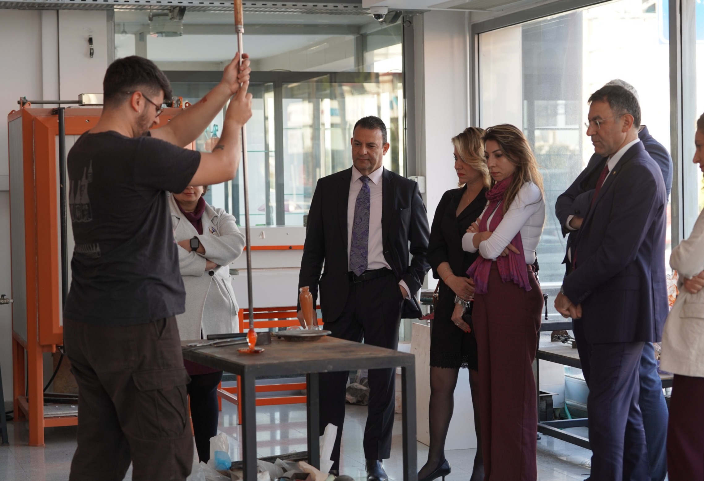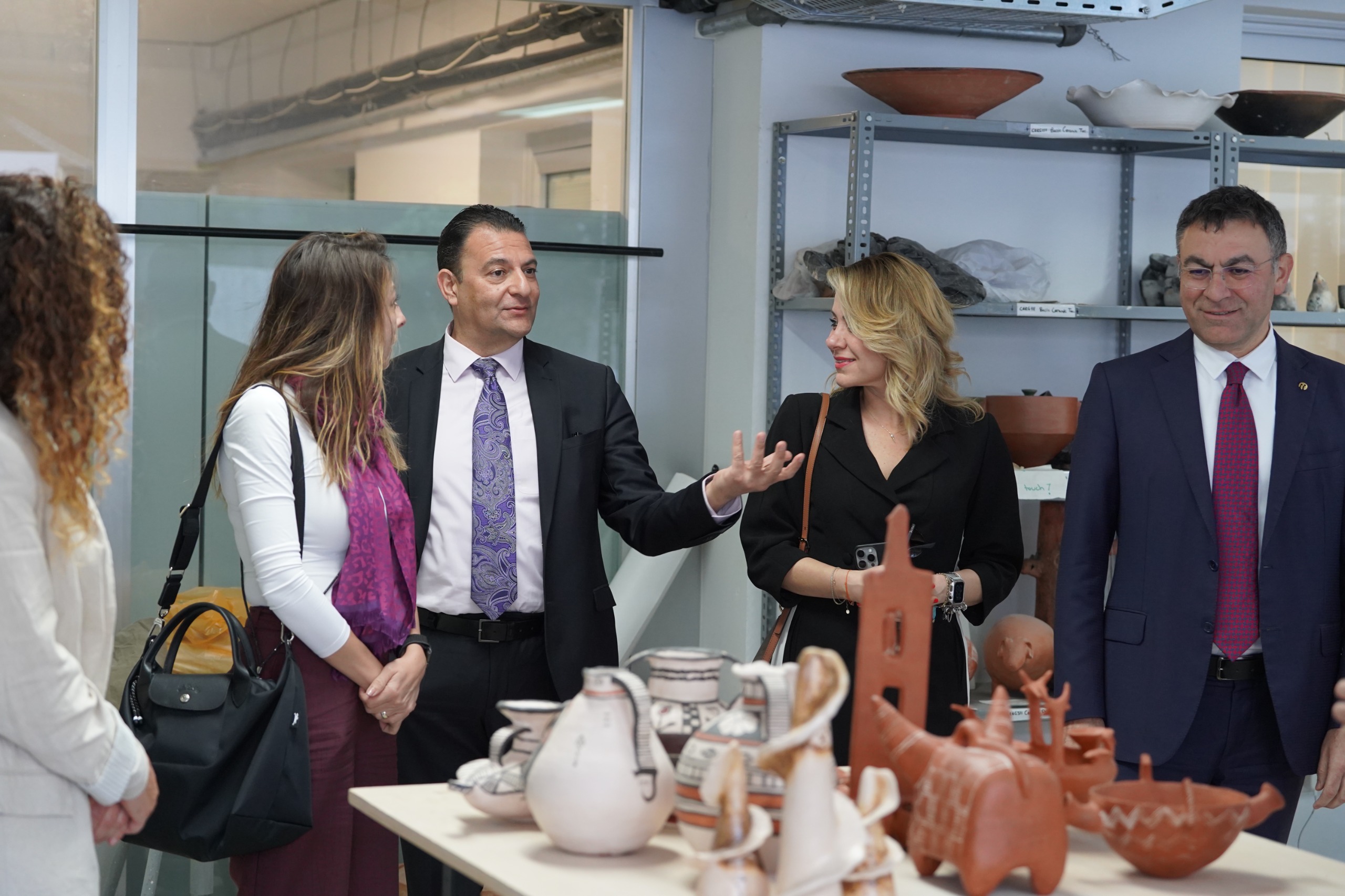 Protokol imza töreni öncesinde Kuzey Kıbrıs Turkcell heyeti, ARUCAD Kampüsünde yer alan Cam ve Seramik Atölyelerini ziyaret ederek atölyelerin teknik altyapısını ve öğrencilerin üretim süreçlerini yakından inceleme fırsatı buldu.