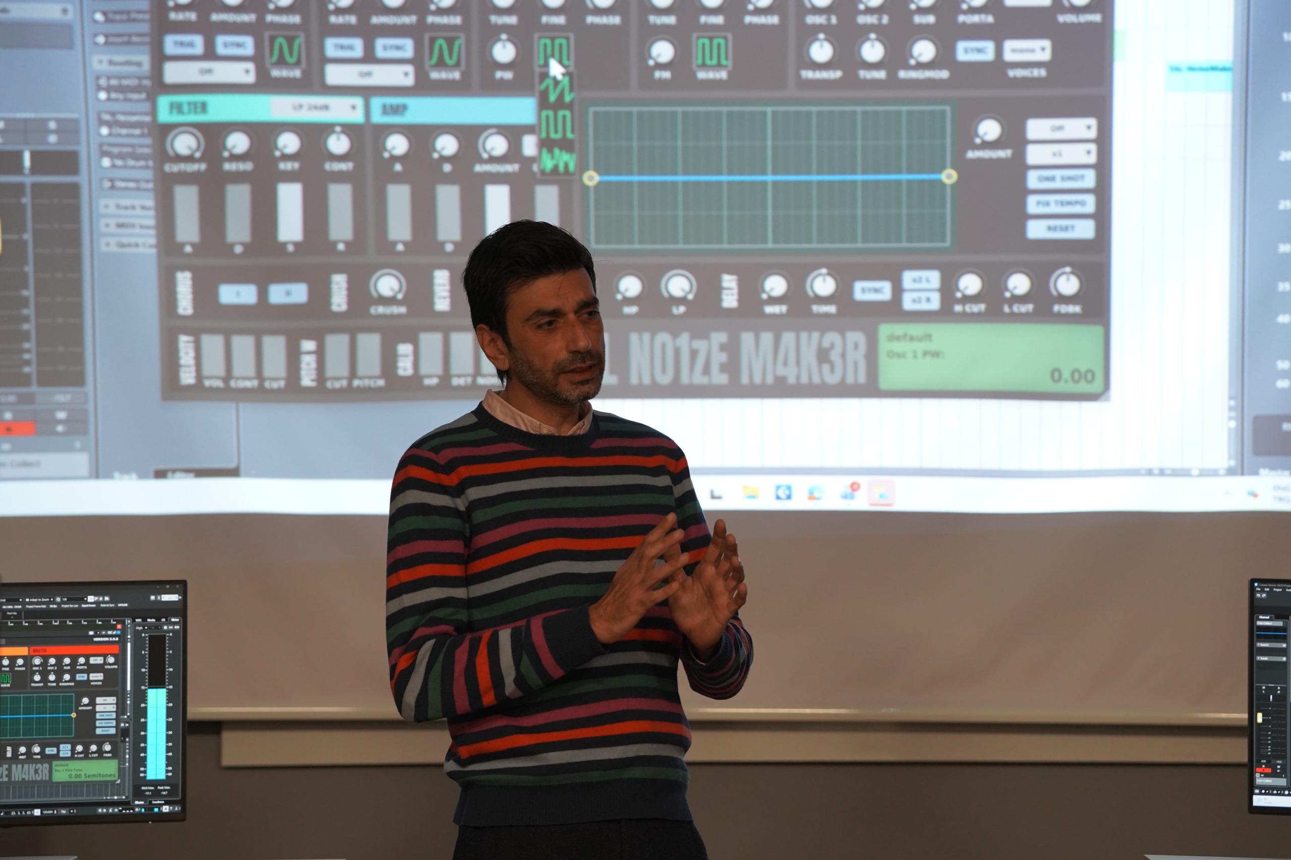 Oyun Müzikleri Haftası kapsamında yürütülen atölyelere ilişkin değerlendirmelerde bulunan Öğr. Gör. Ataman Kınış, oyun sesinin etkileşimli doğasına dikkat çekerek, “Oyun müziği ve ses tasarımı, film gibi doğrusal mecralardan farklı olarak oyuncunun eylemlerine tepki veren bir yapıya sahip. Bu hafta boyunca öğrencilerin oyun sesinin nasıl üretildiğini ve nasıl uygulandığını hem akademik hem de pratik düzeyde deneyimlemelerini hedefledik” dedi.