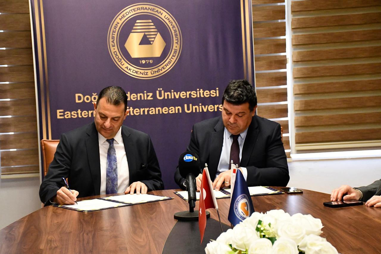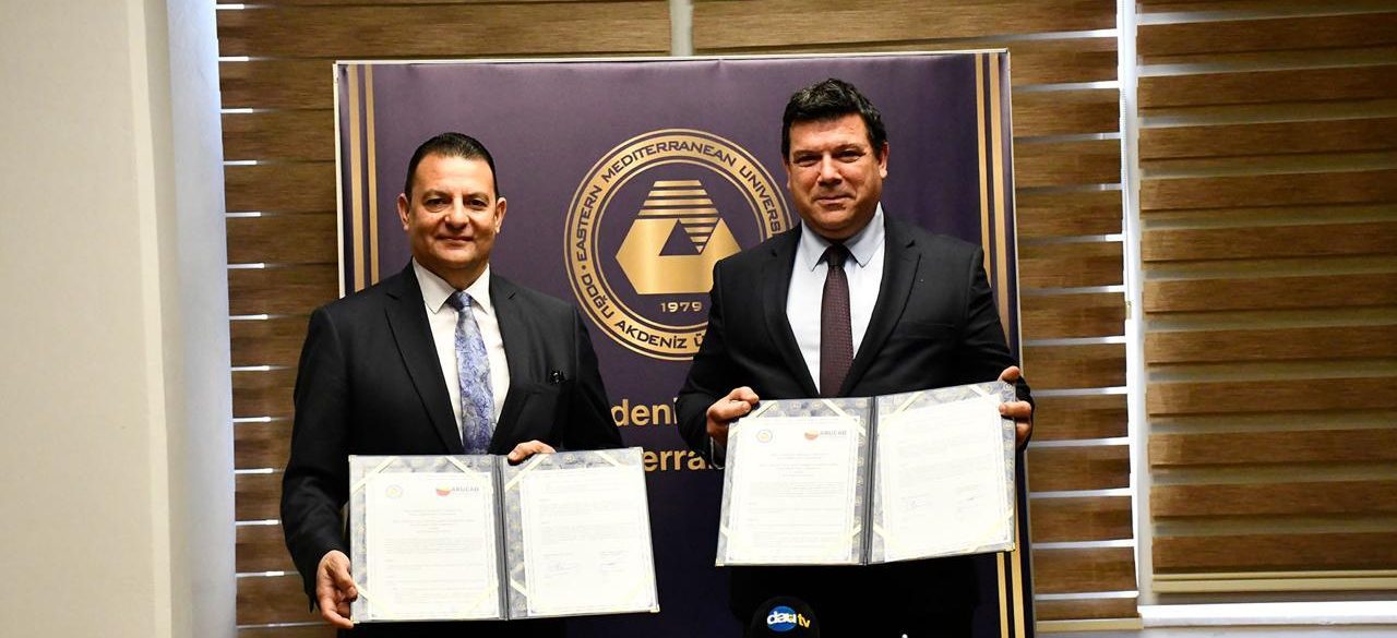 A cooperation protocol aimed at developing, strengthening, and promoting relations was signed between Eastern Mediterranean University (EMU) and Arkin University of Creative Arts and Design (ARUCAD). The signing ceremony took place on Tuesday, March 24, 2026, at 12:00 at the EMU Rectorate, where the protocol was signed by EMU Rector Prof. Dr. Hasan Kılıç and ARUCAD Rector Prof. Dr. Asım Vehbi.
